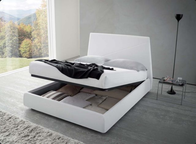 Letto elegante e raffinato, la testata è arricchita da una trapunta a motivi geometrici contornata da un bordo di soffice imbottitura .
